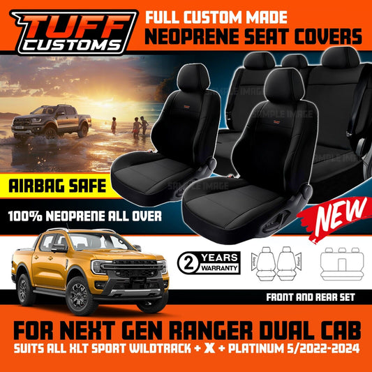 TUFF Customs Neoprene Seat Covers 2 Rows For FORD RANGER NEXT GEN XLT PLATINUM 5/2022-2025