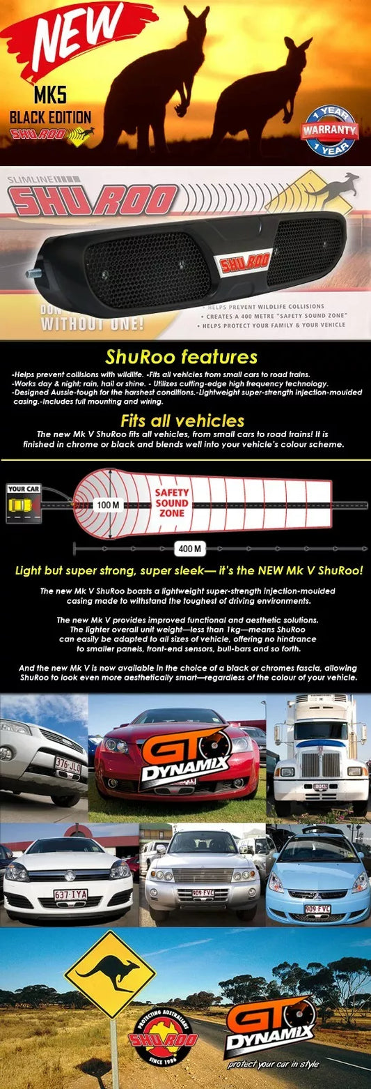 ShuRoo MK5 BLACK SLIM LINE High Frequency Vehicle Protection Kangaroo SHU ROO