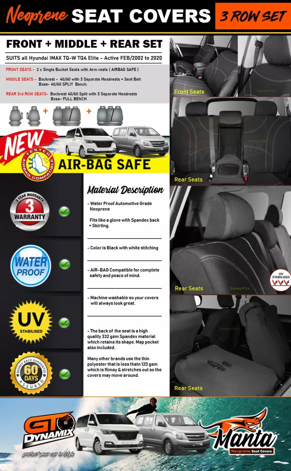 Manta Neoprene 3 Rows Seat Covers For HYUNDAI I-Max Set TQ-W TQ4 IMAX 2/2008-2020