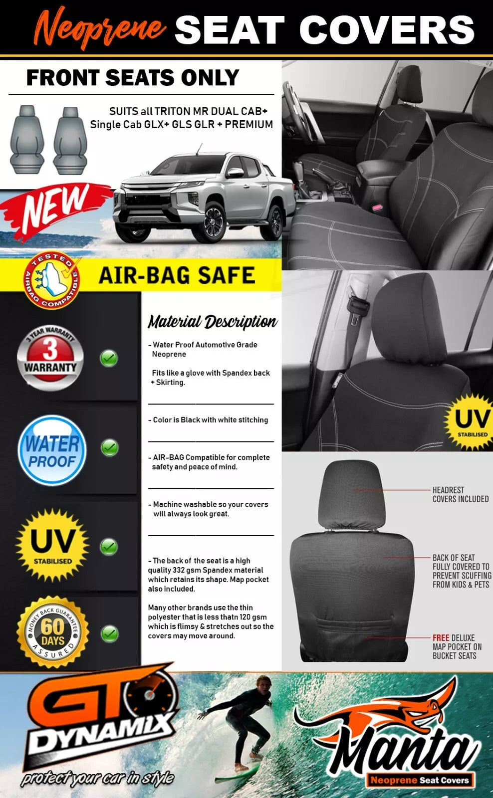 Manta Neoprene Front Seat Covers For TRITON MR DUAL CAB 2019-2025