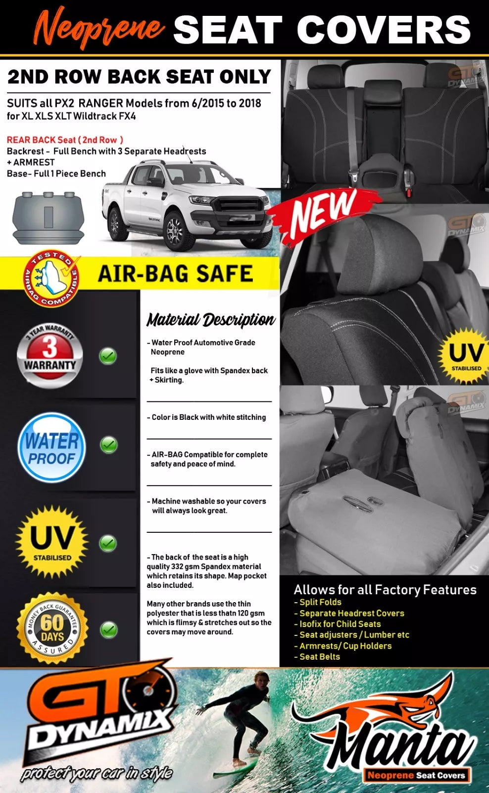 Manta Neoprene Rear Seat Covers For FORD PX2 PX3 RANGER 6/2015-2022