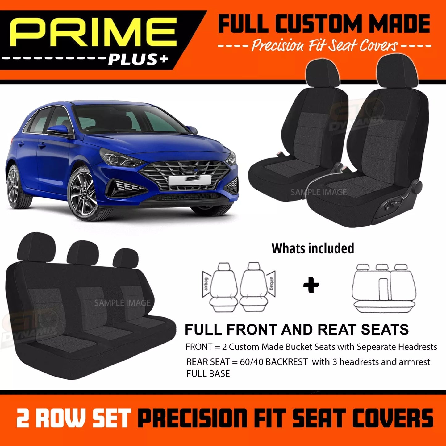 PRIME PLUS Seat Covers 2 Rows Black For Hyundai i30 PD PD2 Active Elite SR 3/2017-2025