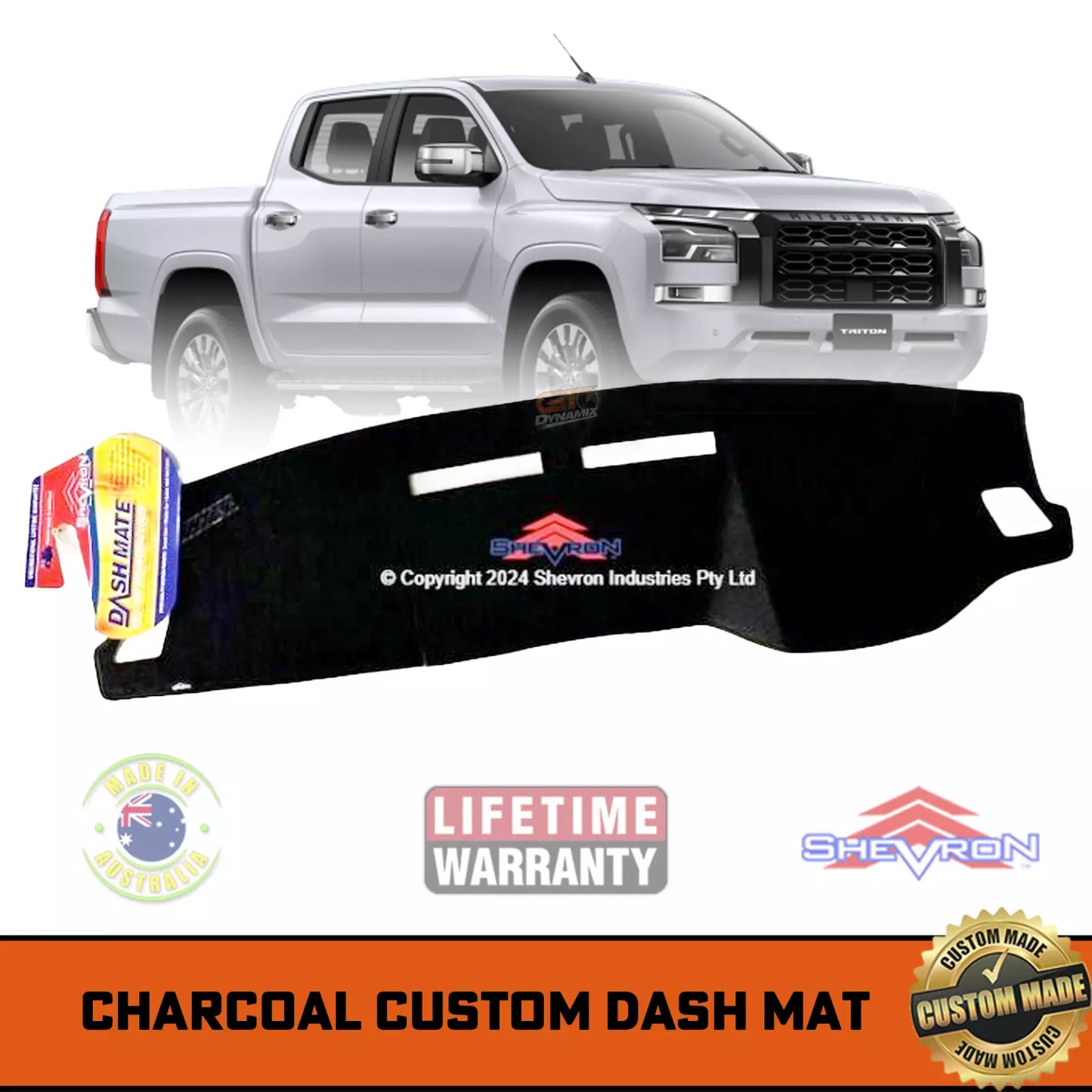 Shevron Dash Mat Mitsubishi Triton MV Dual Cab Ute 12/2023-2025 DM1702 CHARCOAL GREY