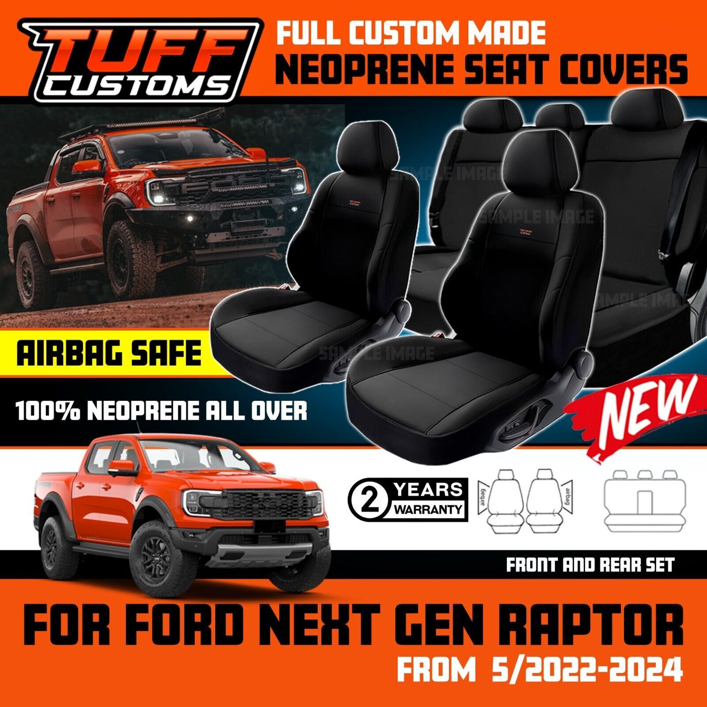 TUFF Customs Neoprene Seat Covers For FORD RANGER NEXT GEN RAPTOR 5/2022-2025 Black 2 Rows