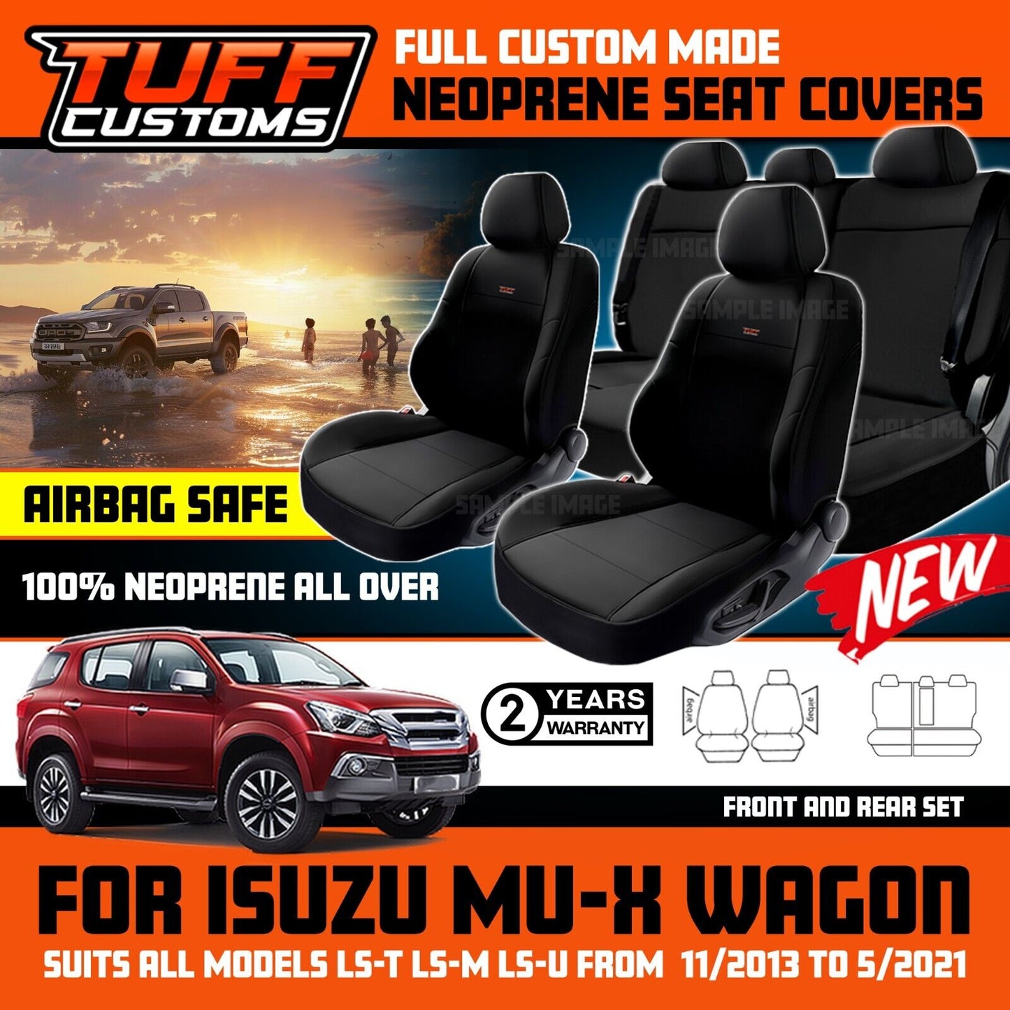 TUFF Customs Neoprene Seat Covers For Isuzu MUX MU-X LS-M LS-U UC 11/2013-5/2021 Black 2 Rows