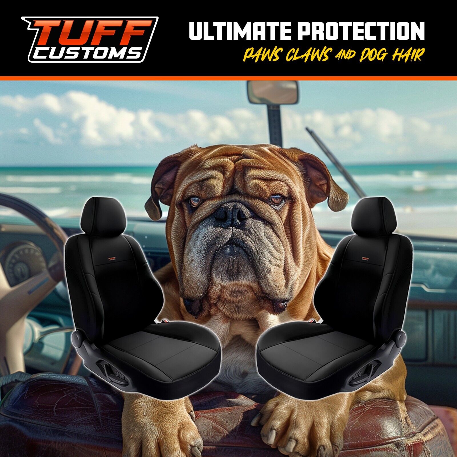 TUFF Customs Neoprene Seat Covers For Nissan Navara D23 NP300 S5 PRO-4X ST 10/2020-2025 Black 2 Rows