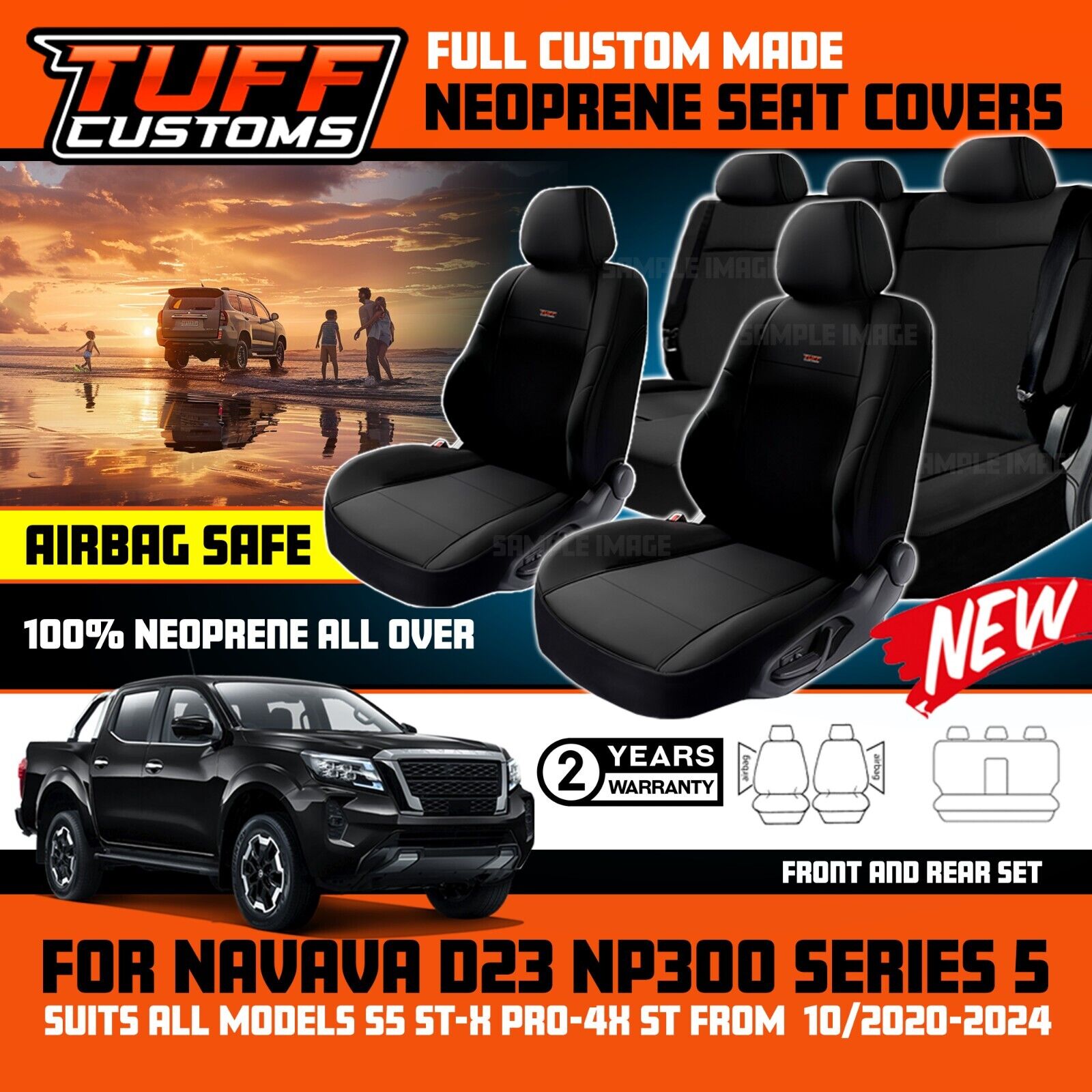 TUFF Customs Neoprene Seat Covers For Nissan Navara D23 NP300 S5 ST ST-X 10/2000-2025 Black 2 Rows