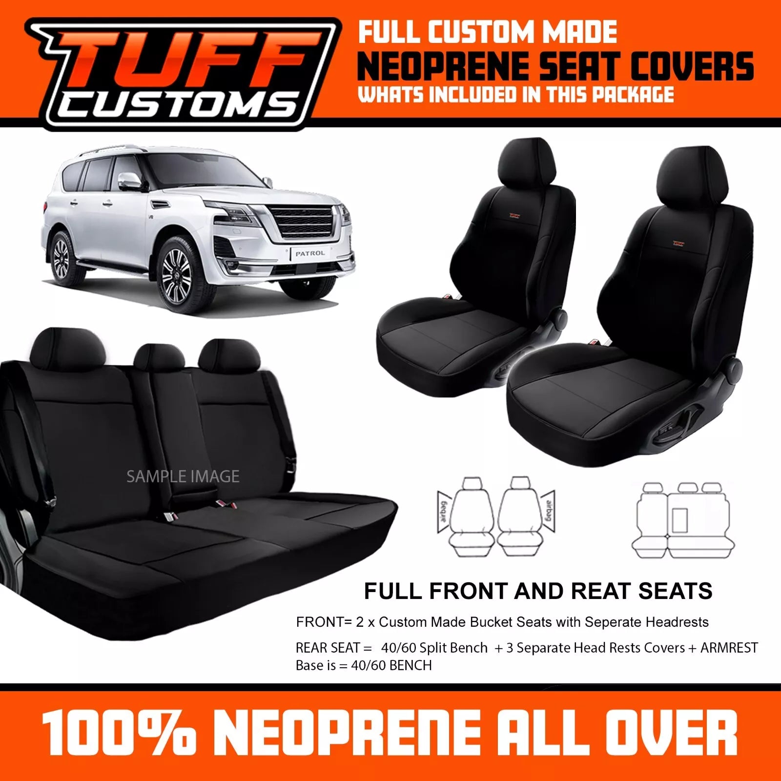 TUFF Customs Neoprene Seat Covers For Nissan Y62 PATROL TI TI-L ST 2013-2025 Black 2 Rows