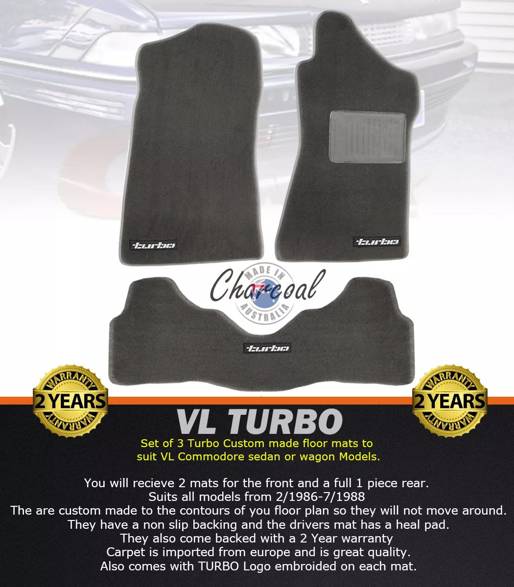 VL TURBO CUSTOM MADE FLOOR MATS SET OF 3 Charcoal with Silver Badge Calais BT1
